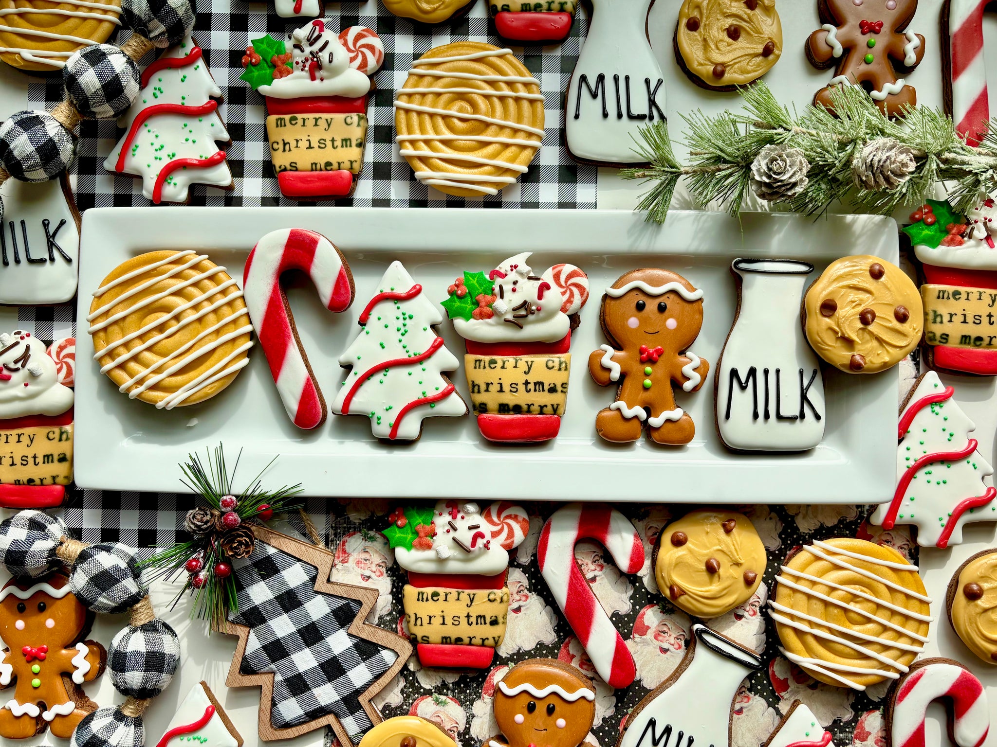 All the best Christmas desserts!! This pack of 7 treats includes a milk and cookie for Santa, a cinnamon roll for Christmas morning, a candy cane, a cup hot chocolate, a gingerbread man, and a Little Debbie Christmas cake.